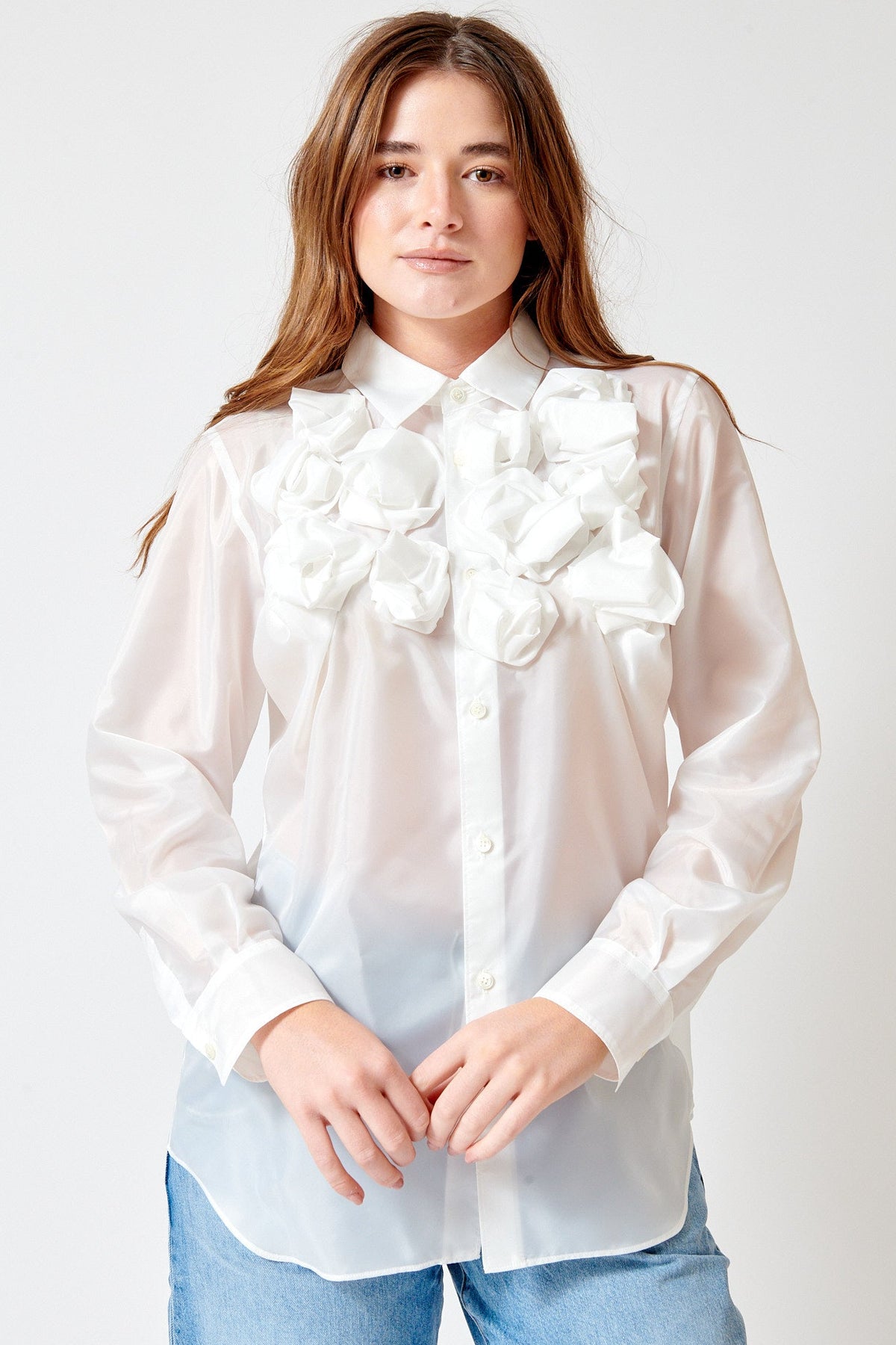 Comme des Garçons Fancy Poly Taffeta Jabot Blouse