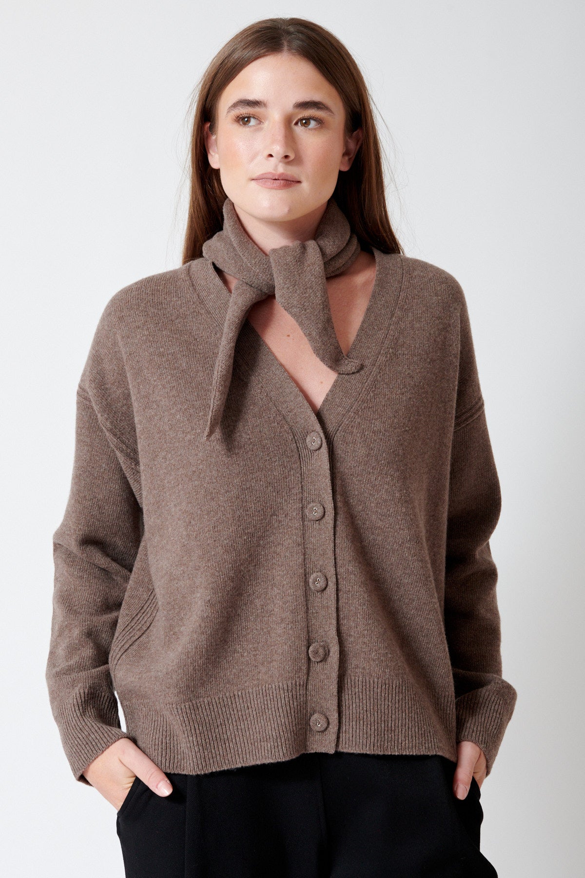 Meimeij Covered Button Cardigan With Detachable Knit Neckerchief