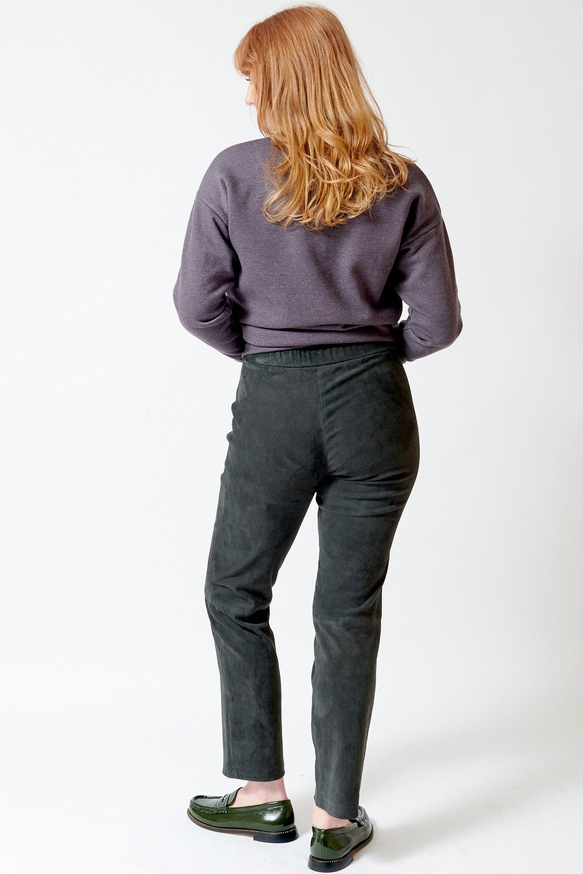 A classic cigarette silhouette pant, made in our signature stretch-leather, are effortlessly chic and easy to wear. Designed for a relaxed fit with a comfortable elastic-stretch waistband, these pants combine the look of a classic pant with the comfort and wearability of a legging.