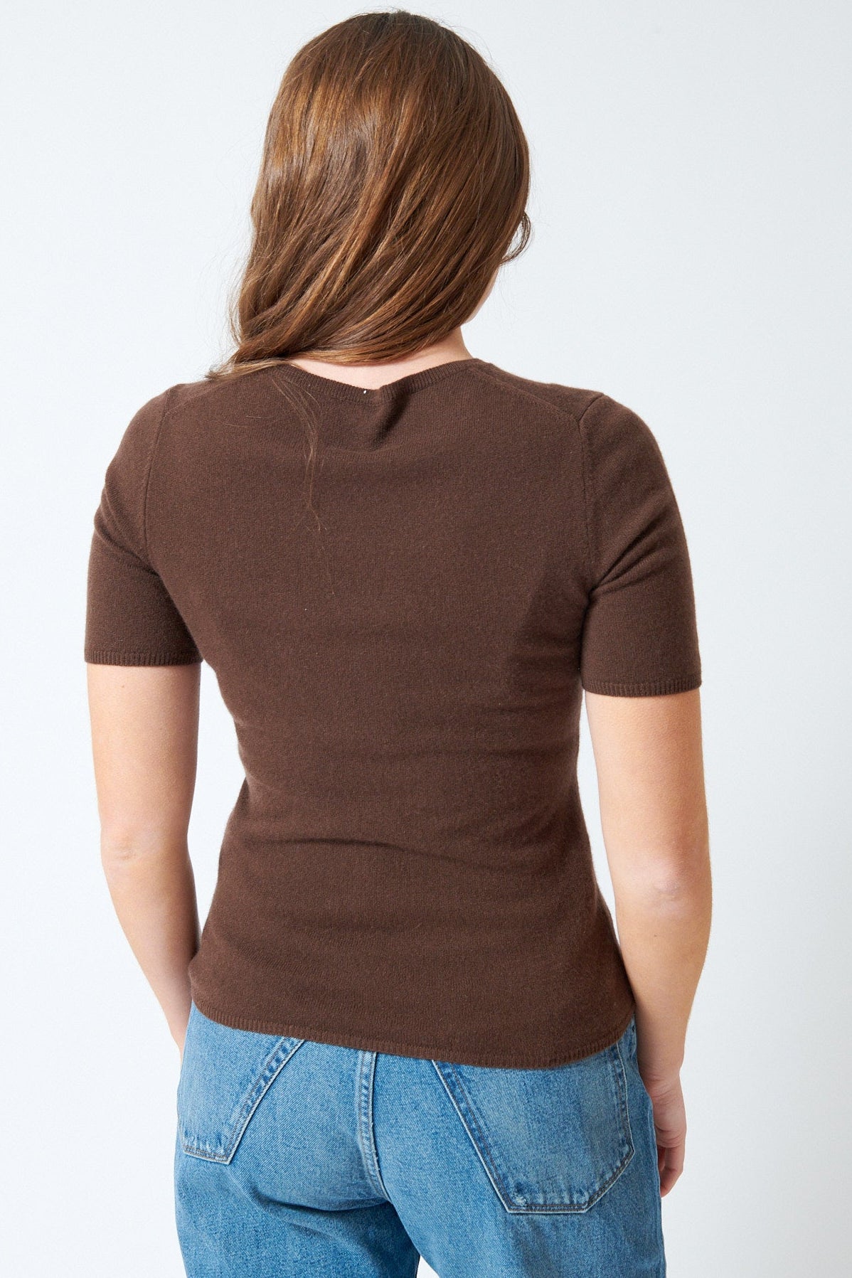 Women's sweater made of 100% cashmere features a tailored cut and fine knit, emphasized by a round neck and 1/4 sleeves.