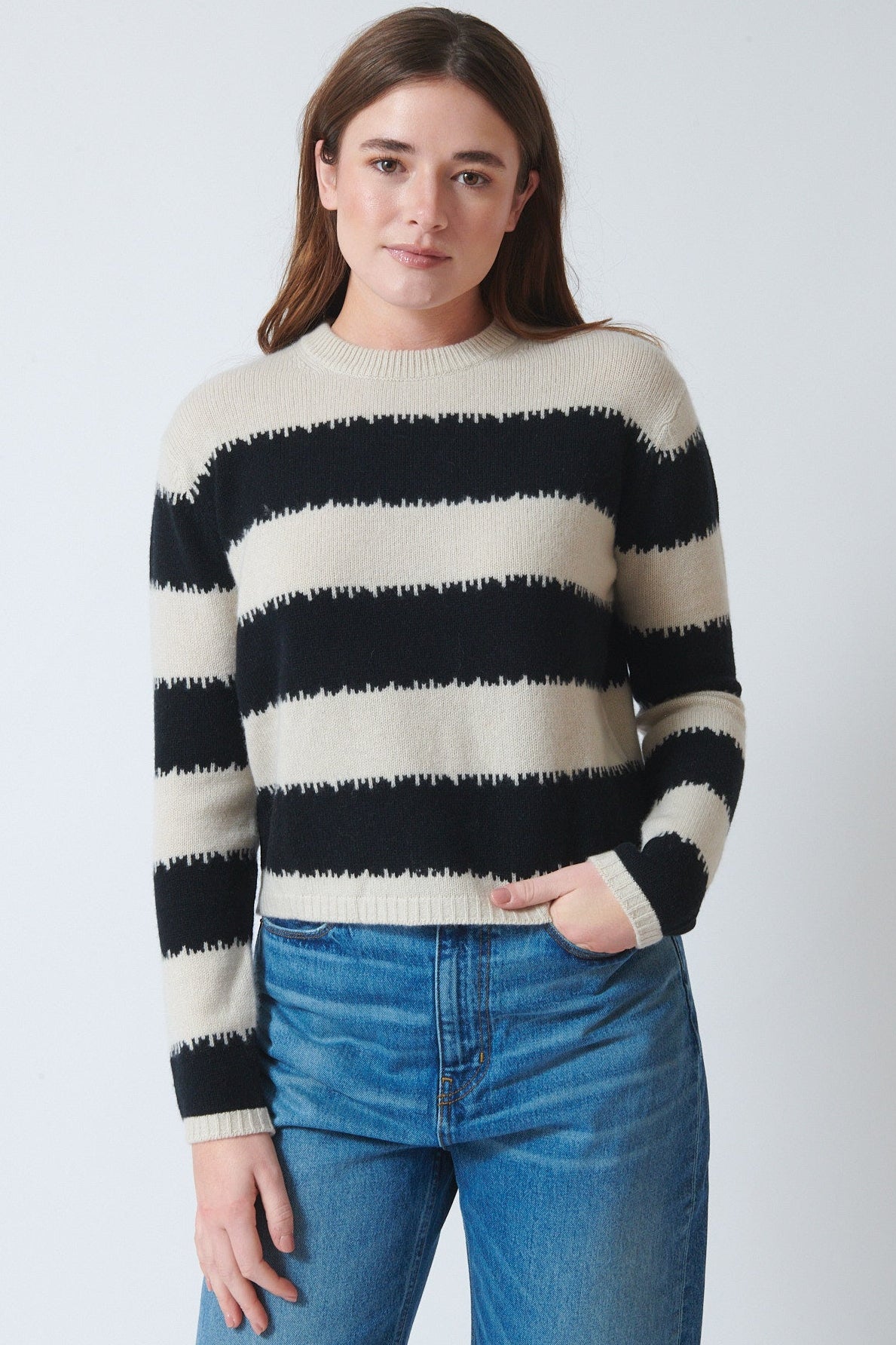 Our lightweight cashmere crew neck in black with raglan sleeves and slightly shorter in the body than our 'classic fit'.