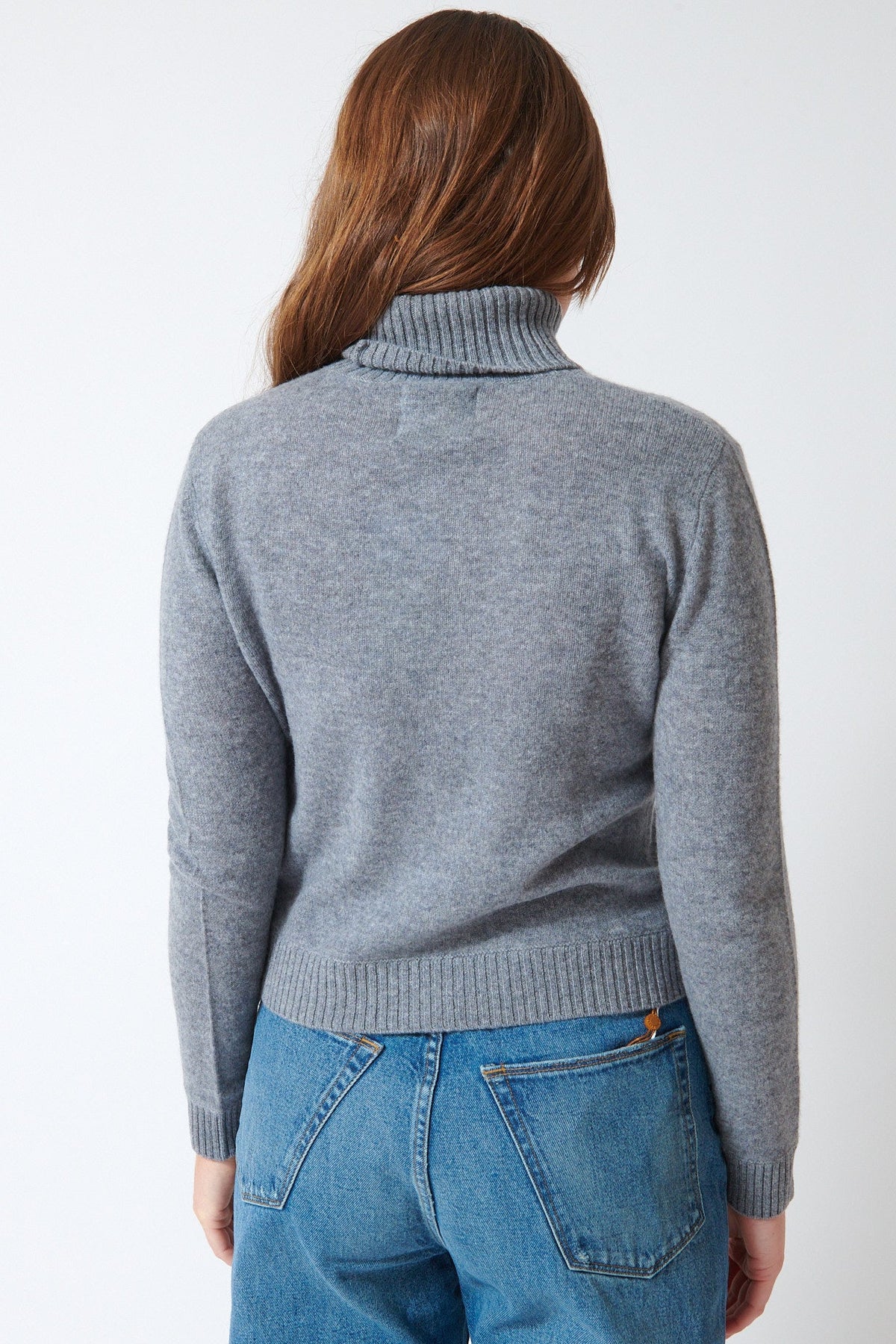 Jumper 1234 cashmere jumper. Grey cashmere roll collar with 'distressed' ribs. We are obsessed with this new style, based on the best selling 'distressed' crew neck but updated for autumn winter with a roll collar.