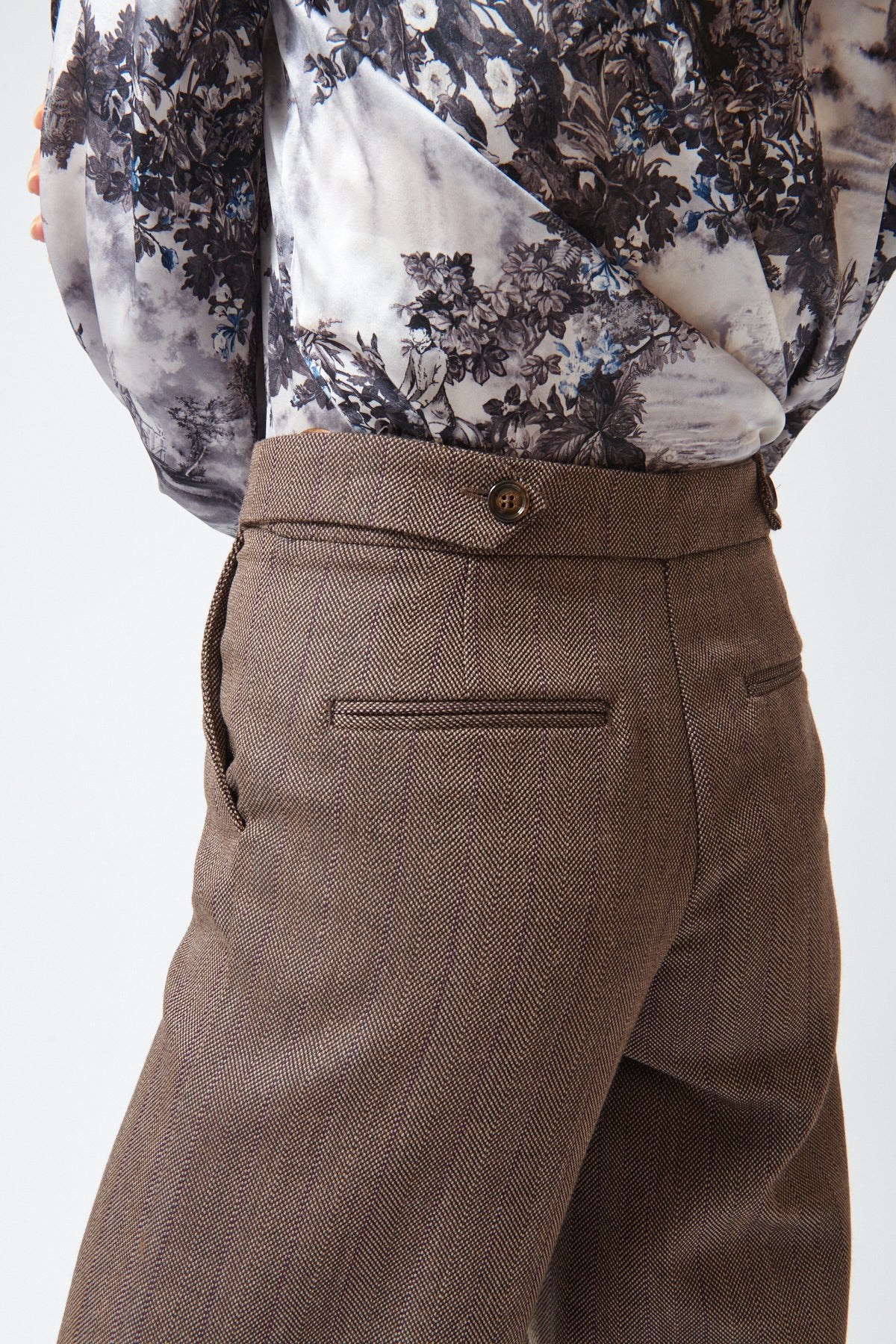 Tailored stovepipe pants in Shetland wool grisaille. Ethan features turn-up cuffs, pressed crease and a bandless waist with side adjuster tabs. Slash front pockets, double welt back pockets.