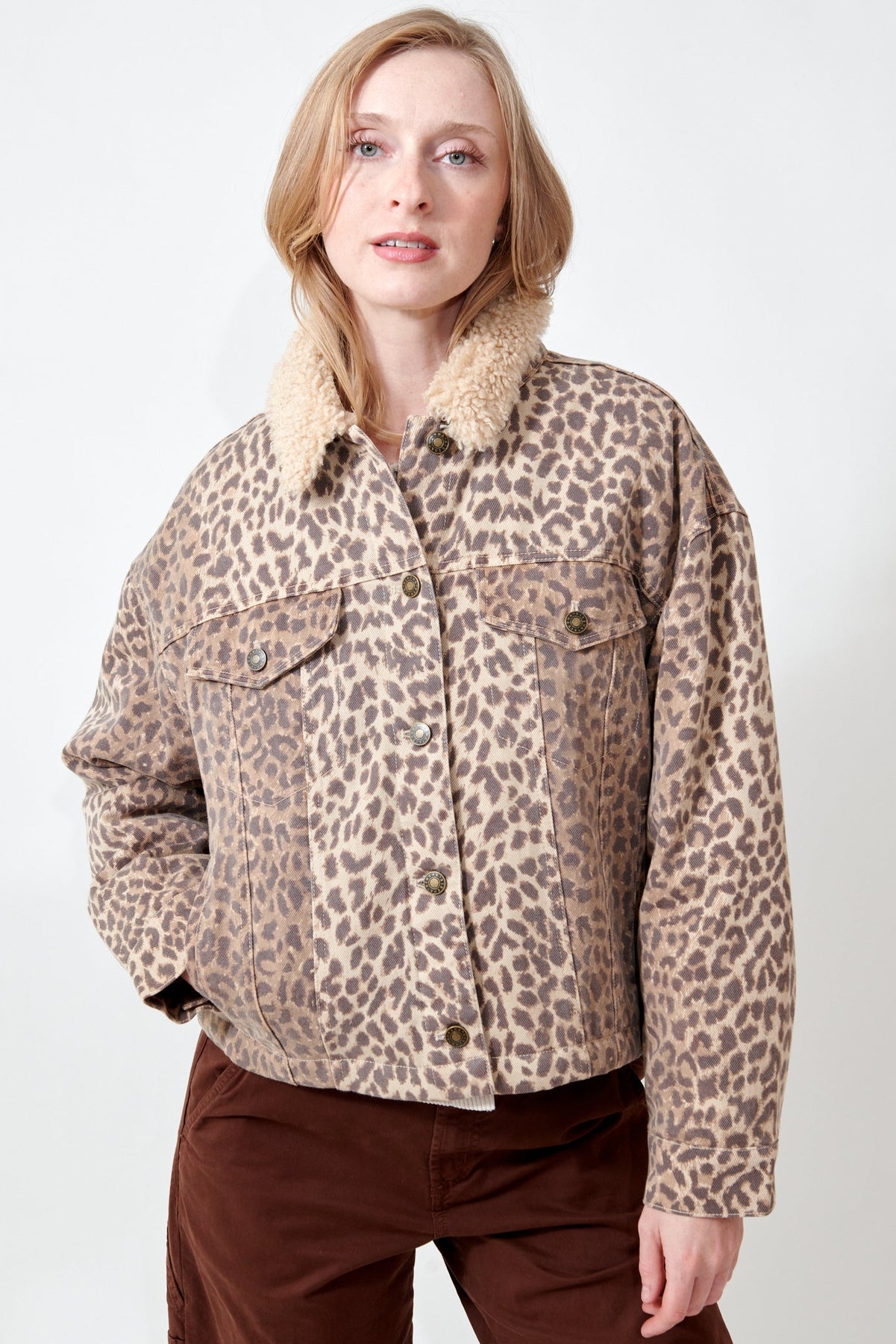 Go wild. The Ryko jacket is designed with a faux-shearling collar, patch pockets, buttons down the front and a boxy, oversized fit.