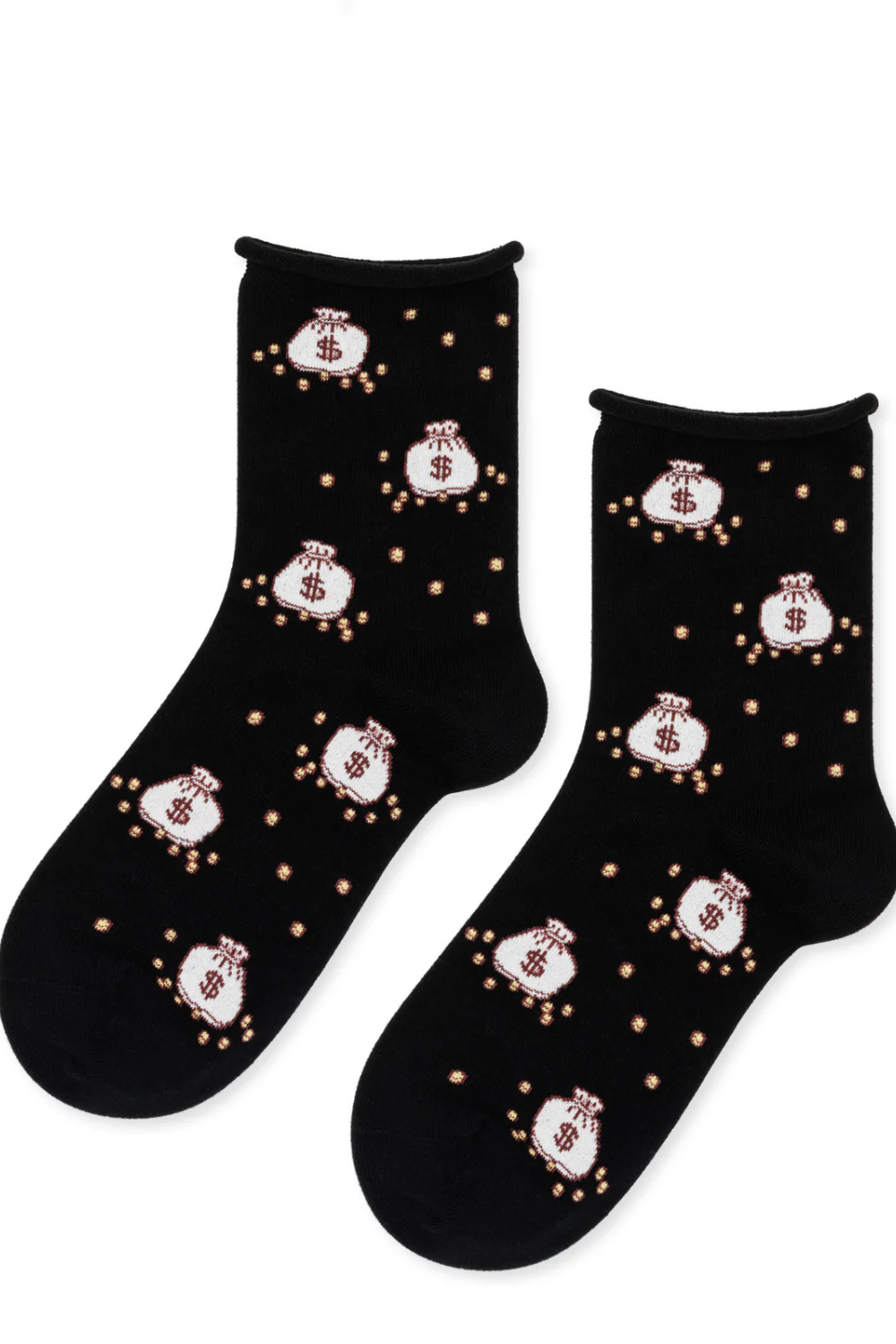 Step up your sock game with Money Bags Crew. No need to be stingy with your style - these socks will have you feeling like a rich fashionista (even if you're just lounging at home in them).