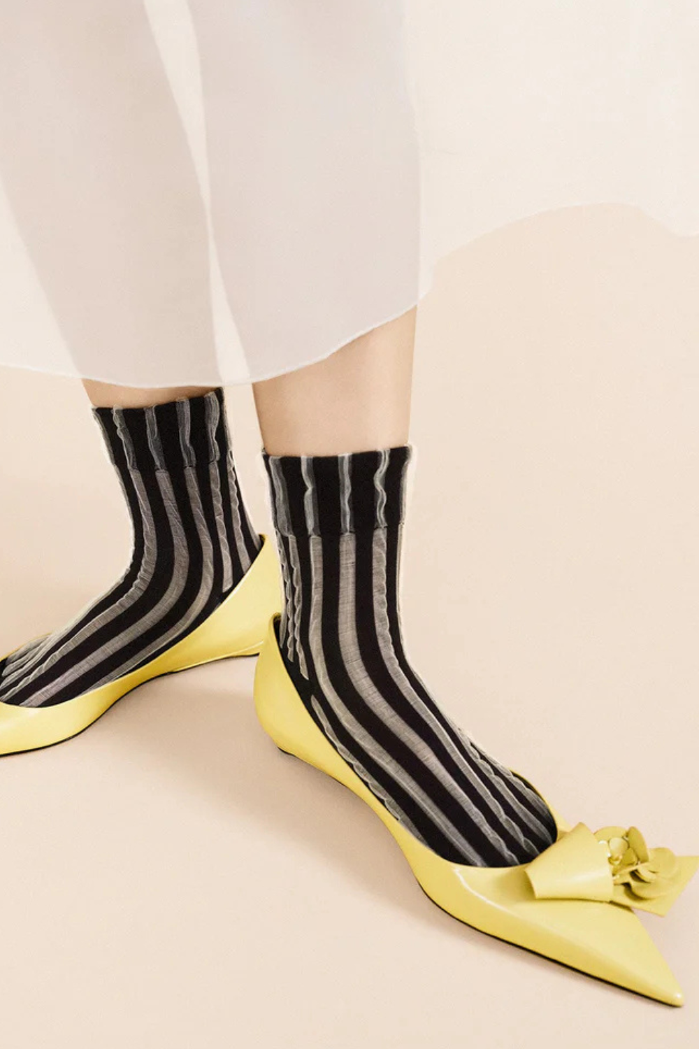 Channel your inner Grecian god/dess in these supercool spongy sheer crews inspired by Greek columns and vintage towels. Wearing them just might make you feel as fabulous as vacationing by the Mediterranean Sea.