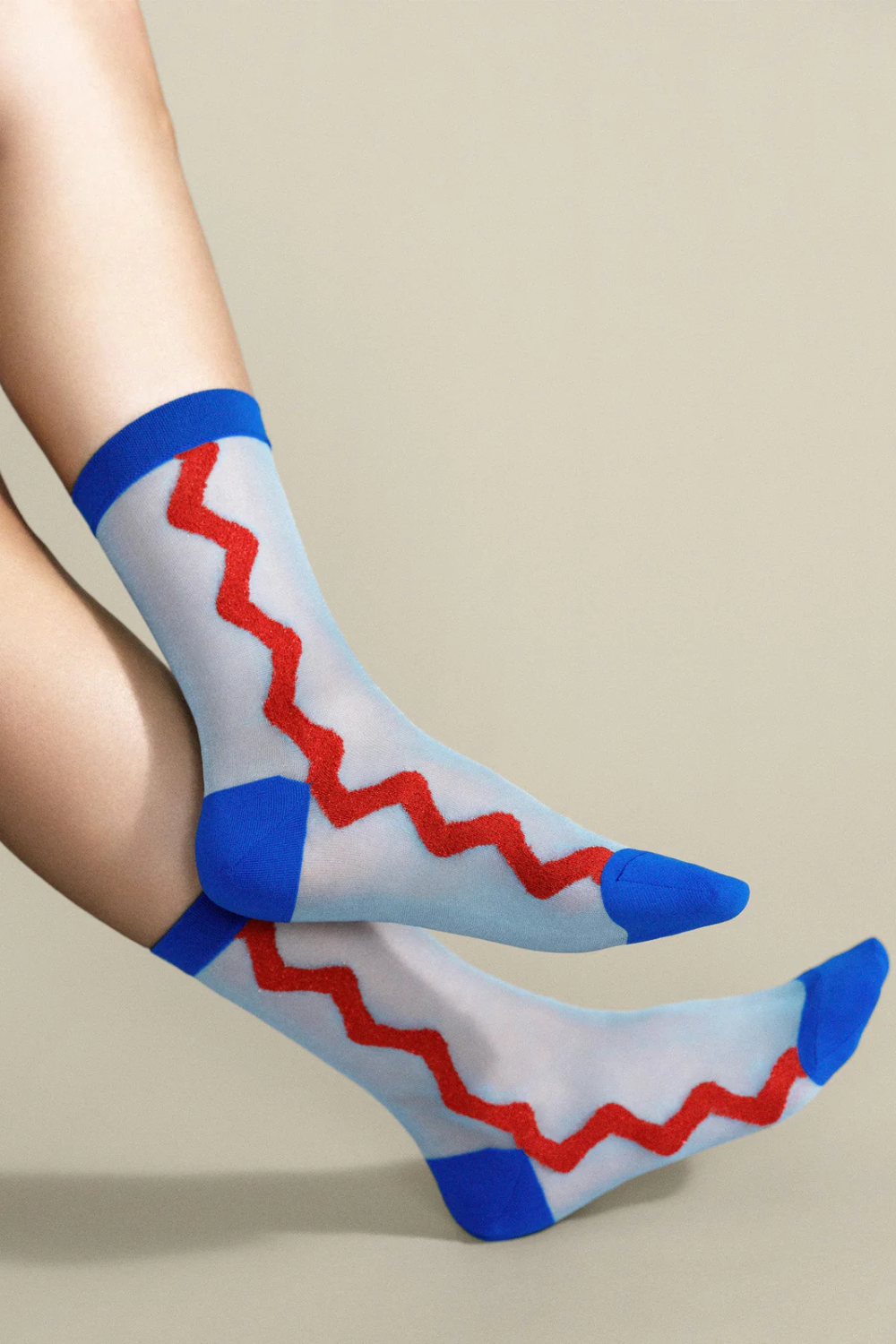 Model wearing Hansel From Basel Zig Zag Sheer Crew front view