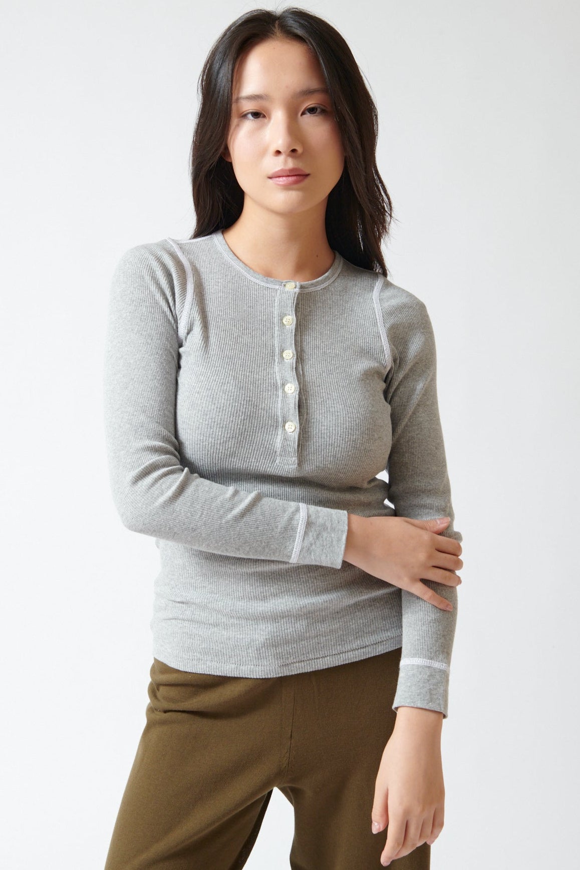 This vintage-inspired Rib Slim Henley. is a closet staple. Made in L.A. using a recycled cotton blend, the fabric has a hint of stretch for comfort and ease. Staying true to its original inspiration, it features a crew neckline with a Henley placket and delicate buttons.